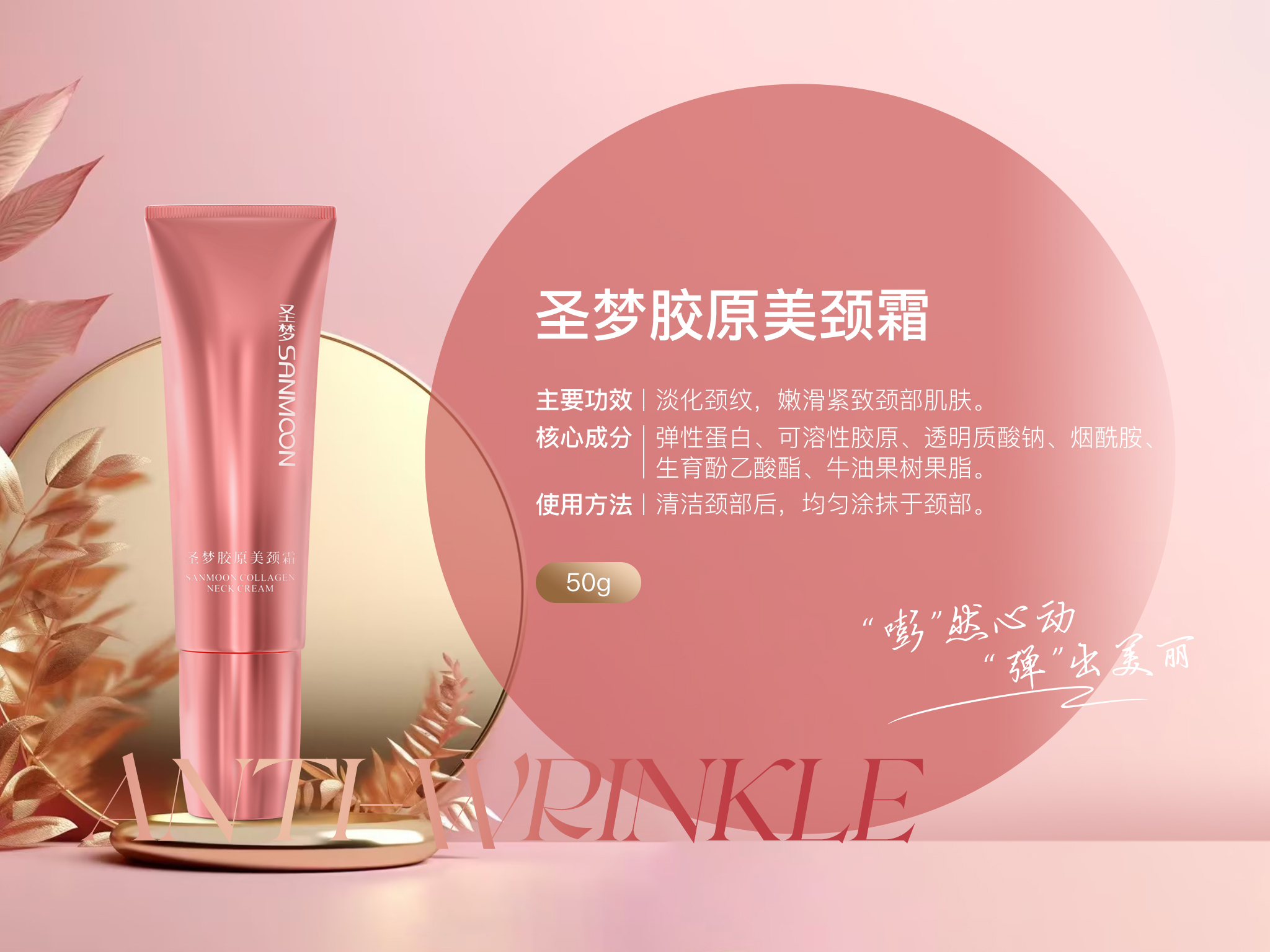 淡化颈纹,嫩滑紧致颈部肌肤。