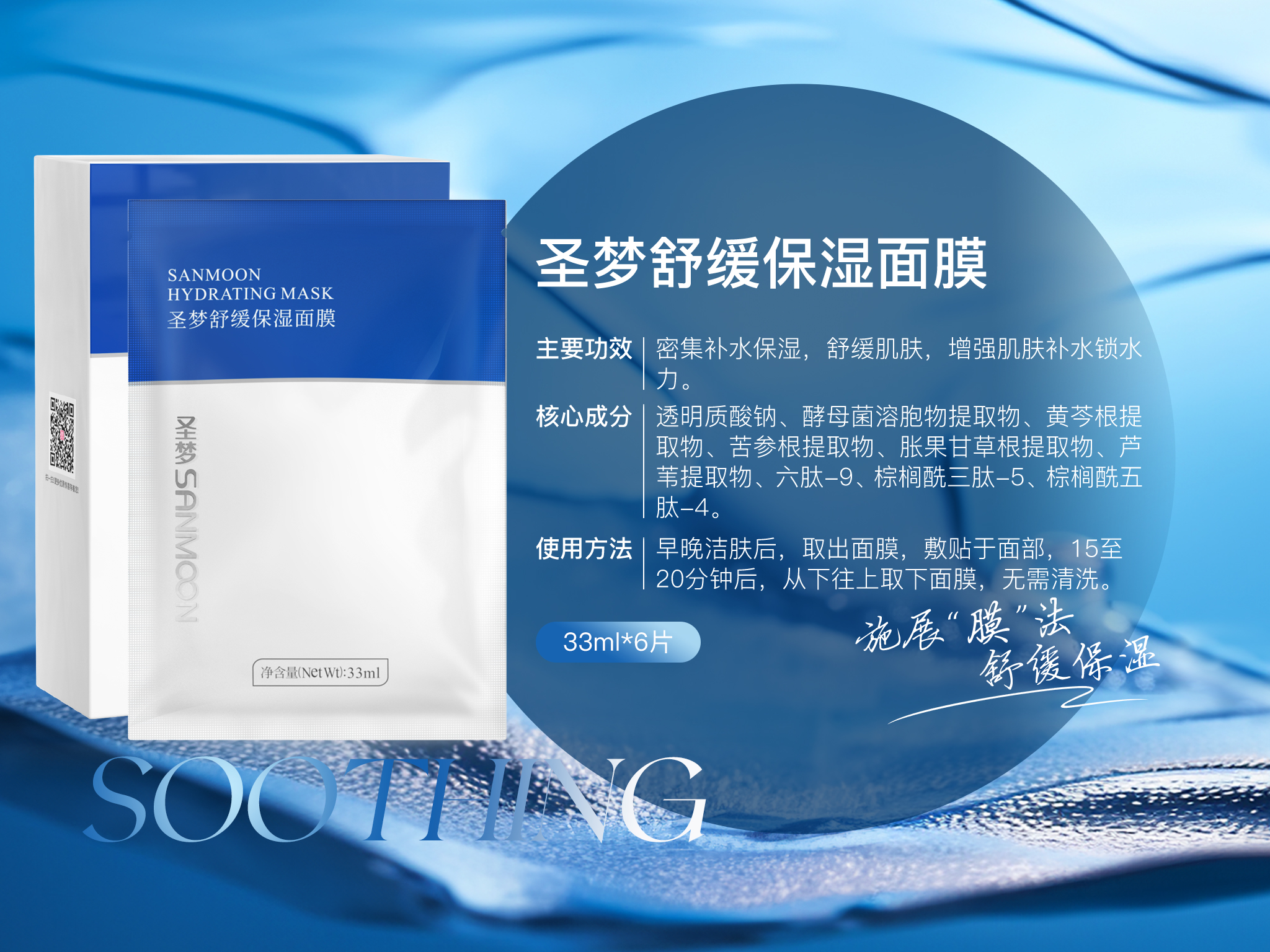 密集补水保湿,舒缓肌肤,增强肌肤补水锁水力。
